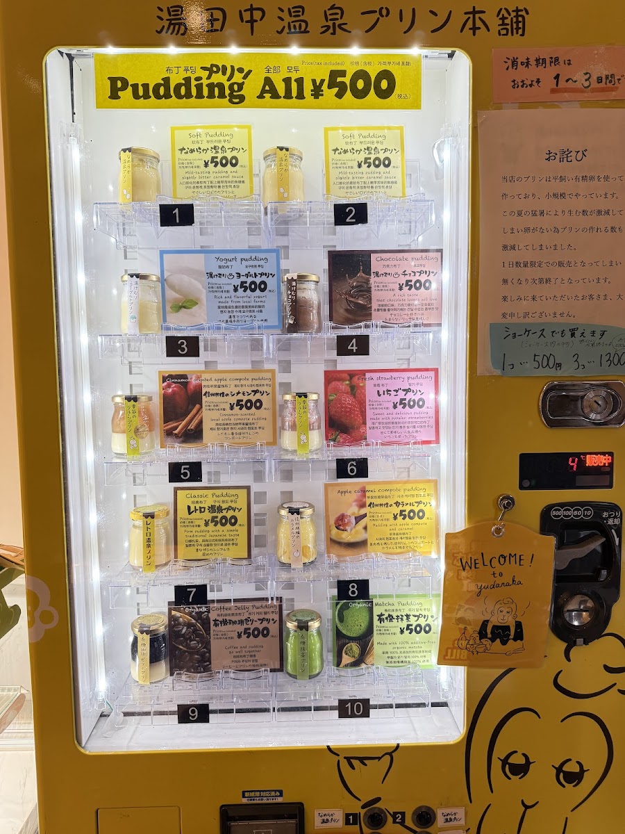 The menu at Yudanaka Onsen Pudding Honpo is a delightful exploration of creamy, custard-based desserts that celebrate both tradition and indulgence. Signature offerings like なめらか温泉プリンとレトロ温泉プリン showcase a perfect balance of silky texture and rich flavor, providing a gentle nod to classic Japanese pudding. For those seeking a playful twist, プリンソフト combines the smoothness of pudding with soft-serve ice cream, creating a light yet satisfying treat. The nostalgic charm of 温泉プリンレトロ evokes memories of old-school dessert shops, while 湯けむり生プリン impresses with its fresh, delicate creaminess that melts effortlessly on the tongue. Fans of firmer textures will appreciate 固め の レトロ プリン , offering a pleasantly dense consistency that stands apart from the softer varieties. Each item is thoughtfully crafted, emphasizing high-quality ingredients and attention to detail, making the menu both approachable and memorable. Together, these dishes provide a harmonious spectrum of pudding experiences that celebrate the essence of Yudanaka’s onsen culture in every bite.